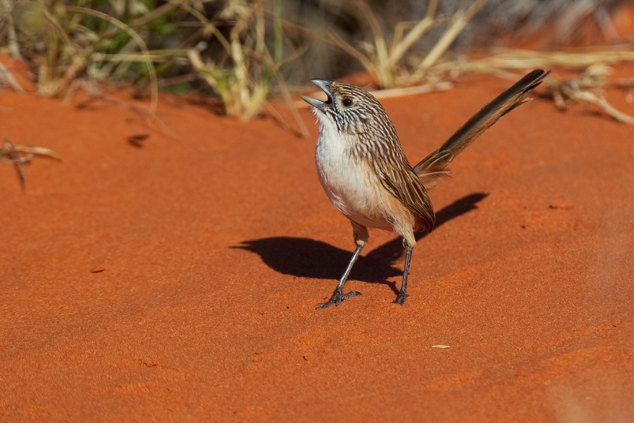Day 15-16: Two full days to explore this remote corner of Australia, including sections of the Birdsville Track. Lying at the border of the Strzelecki and Simpson Deserts, we have more chances to see many of the species from previous days (particularly tricky ones like Grey Falcon). The stars of the show however are two excellent endemics: the lignum-loving Grey Grasswren and dune-loving Eyrean Grasswren. Depending on water levels and access, we may also be able to find Yellow Chat and Thick-billed Grasswren, though these are somewhat unpredictable. Other new species will include Red-backed Kingfisher, Banded Whiteface and Chirruping Wedgebill. Nights in Birdsville.