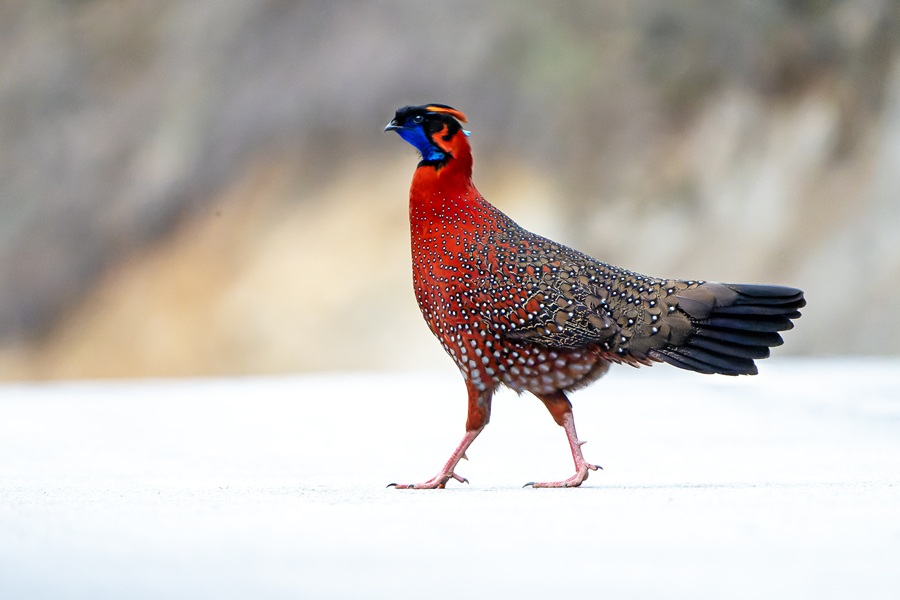 Day 12: Focusing on the higher elevations of the road through the national park today, we will continue all the way through to Sengor for overnight. The much-wanted Satyr Tragopan occurs throughout this area, and we will also keep an eye out for Gold-naped Finch, White-collared Blackbird, Chestnut-headed Tesia, Scaly-breasted Cupwing, and any other species we may not have already seen. Himalayan Owl is relatively easy to see around our camp after dark. Overnight at Sengor.
