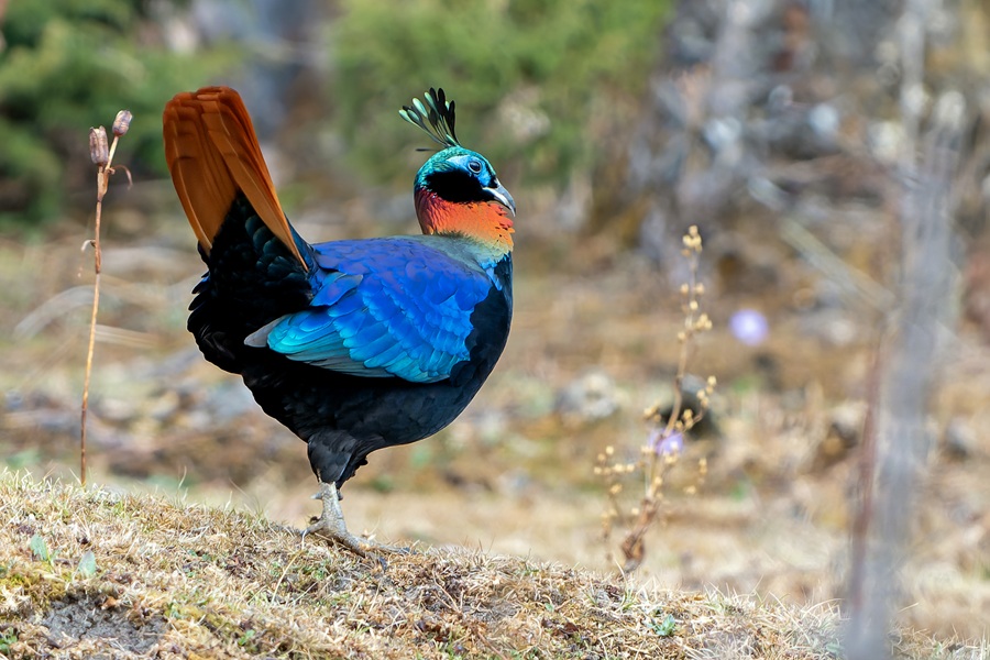 Day 13: More birding in the upper elevations of Thrumsingla National Park, continuing our search for Satyr Tragopan, and perhaps Red Panda. At the high pass of Phrumseng La (3800m), Rhododendron thickets are good for both Fire-tailed Sunbird and Fire-tailed Myzornis. This is also a good area for Fulvous Parrotbill, Golden Bush Robin, White-browed Bush Robin, Spotted Laughingthrush, and Slender-billed Scimitar-Babbler. As we continue onwards during the afternoon, Snow Pigeon and Black-rumped Magpie can be seen in agricultural fields along the valley bottoms. Overnight in Bumthang Valley.