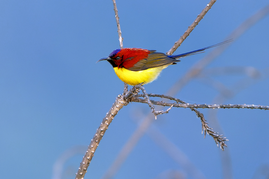Day 3: This morning we will visit Dochu La at 3200m, arriving early so to admire a stunning vista of snow-capped peaks if the weather is clear. This area supports good numbers of the amazing Fire-tailed Myzornis, plus specialties like Great Parrotbill, Hoary-throated Barwing, and Rusty-flanked Treecreeper. Other species could include Spotted Laughingthrush, Black-faced Laughingthrush, Chestnut-crowned Laughingthrush, Red-tailed Minla, Green-tailed Sunbird, Crimson-browed Finch and Dark-breasted Rosefinch. Continuing on our winding mountain route through superb stretches of pristine forest, we’ll make our first attempts for Ward’s Trogon. Roving bird flocks contain Darjeeling Woodpecker, Blue-winged Minla, Black-throated Tit, Black-faced Warbler, Whiskered Yuhina, White-browed Shrike-babbler, Rufous-winged Fulvetta, and Yellow-throated Fulvetta. We should reach the town of Punakha in the late afternoon for our overnight stay, and those who wish can visit the world-famous palace of Punakha Dzong.
