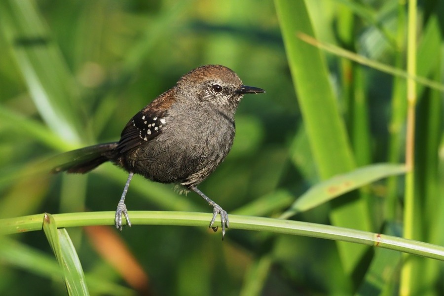 Day 2: Morning of forest birding near Borda do Campo in search of Mottled Piculet, Olive Spinetail, Hooded Berryeater, Bare-throated Bellbird, Scalloped Woodcreeper, Dusky-tailed Antbird, Speckle-breasted Antpitta, Diademed, Brassy-breasted and Chestnut-backed Tanagers, and several other Atlantic Forest endemics from the diverse hills of Serra do Mar. In the afternoon, we should keep birding montane forest at Serra da Gaciosa, looking for Slaty Bristlefront (southern race), Brazilian Ruby, Scale-throated Hermit, Bertoni’s Antbird, Giant and Large-tailed Antshrikes, White-browed Foliage-gleaner, Rufous-tailed Attila, Pin-tailed Manakin, Brown-breasted Bamboo Tyrant, and others. In the afternoon, we transfer to Antonina, where we will spend the next two nights. Night in Antonina.