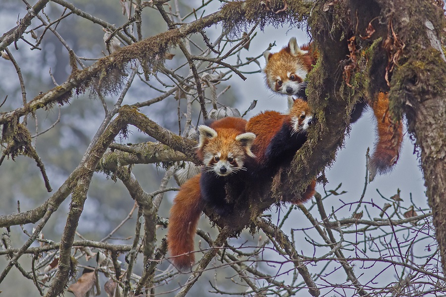 Day 2-3: This forested 3000m peak about 70km to the west of the more famous Emeishan holds a superb mosaic of deciduous forest and large bamboo-covered areas mixed within stands of coniferous rhododendron forest. As we walk around amongst the gnarled, moss-encrusted trees, we may enjoy some superb vistas across a seemingly endless series of mountain ridges to the great snow-capped peaks of western Sichuan beyond. This is one of the best places in the world to see the enigmatic Red Panda, and we expect to be able to enjoy several sightings, hopefully of a calm individual resting next to the main boardwalk!