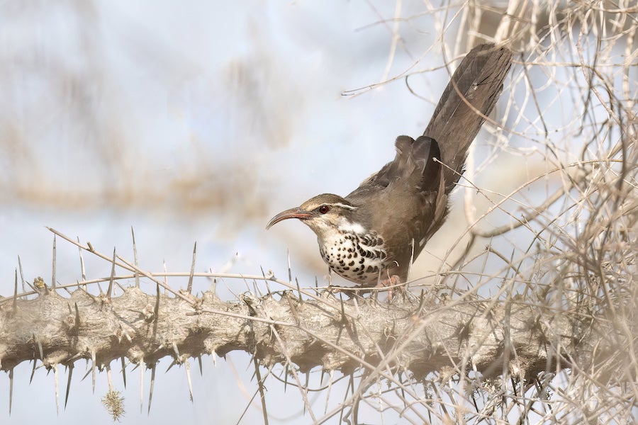 Day 14: Taking a short excursion by boat this morning to the island of Nosy Ve, we will marvel at the breeding colony of elegant Red-tailed Tropicbirds and hopefully spot a Crab-plover or two along the shoreline. Then, back on the mainland at the small fishing village of Anakao, we will sip cold drinks at the beachside bar and watch several localised but tame Littoral Rock Thrush before motoring back to Toliara. Some short visits to mudflats and saline lagoons in the area should produce Madagascar Plover, Humblot’s Heron, and Dimorphic Egret before we transfer into 4WDs for a short hop up the coast to our beachside hotel in Ifaty in time for some initial exploration in the afternoon. Night at Ifaty.