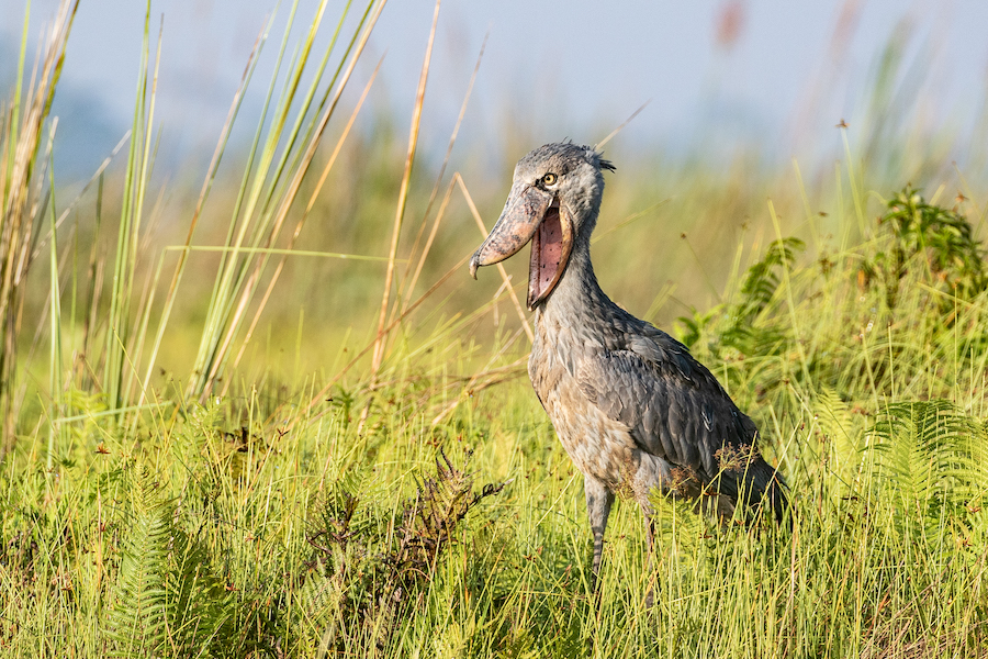 Day 2: Early this morning, we will visit the nearby Mabamba Swamp and take a boat ride through this classic papyrus swamp which is the best place in the world to see the monstrous Shoebill at close range. We will also search for the uncommon Weyn’s Weaver and Lesser Jacana, and maybe Blue Swallow nearby if any are around this season. Transferring northwards, stops will allow us to find the localised Marsh Widowbird before we reach Murchison Falls National Park in the late afternoon. From the top of the falls, we will look for Rock Pratincole as the spectacular volume of water surges over the edge and continues towards Lake Albert and the Nile. Night at Murchison Falls National Park at a comfortable lodge.